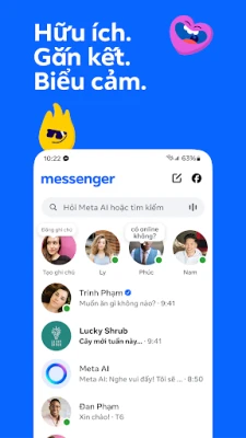 Messenger giúp bạn kết nối bạn bè, gia đình mọi lúc mọi nơi. Khám phá sở thích mới, xây dựng cộng đồng và thể hiện bản thân qua nhiều hình thức độc đáo, không chỉ tin nhắn. Ứng dụng nhắn tin miễn phí đa năng này mang đến thế giới kết nối trong tầm tay bạn.